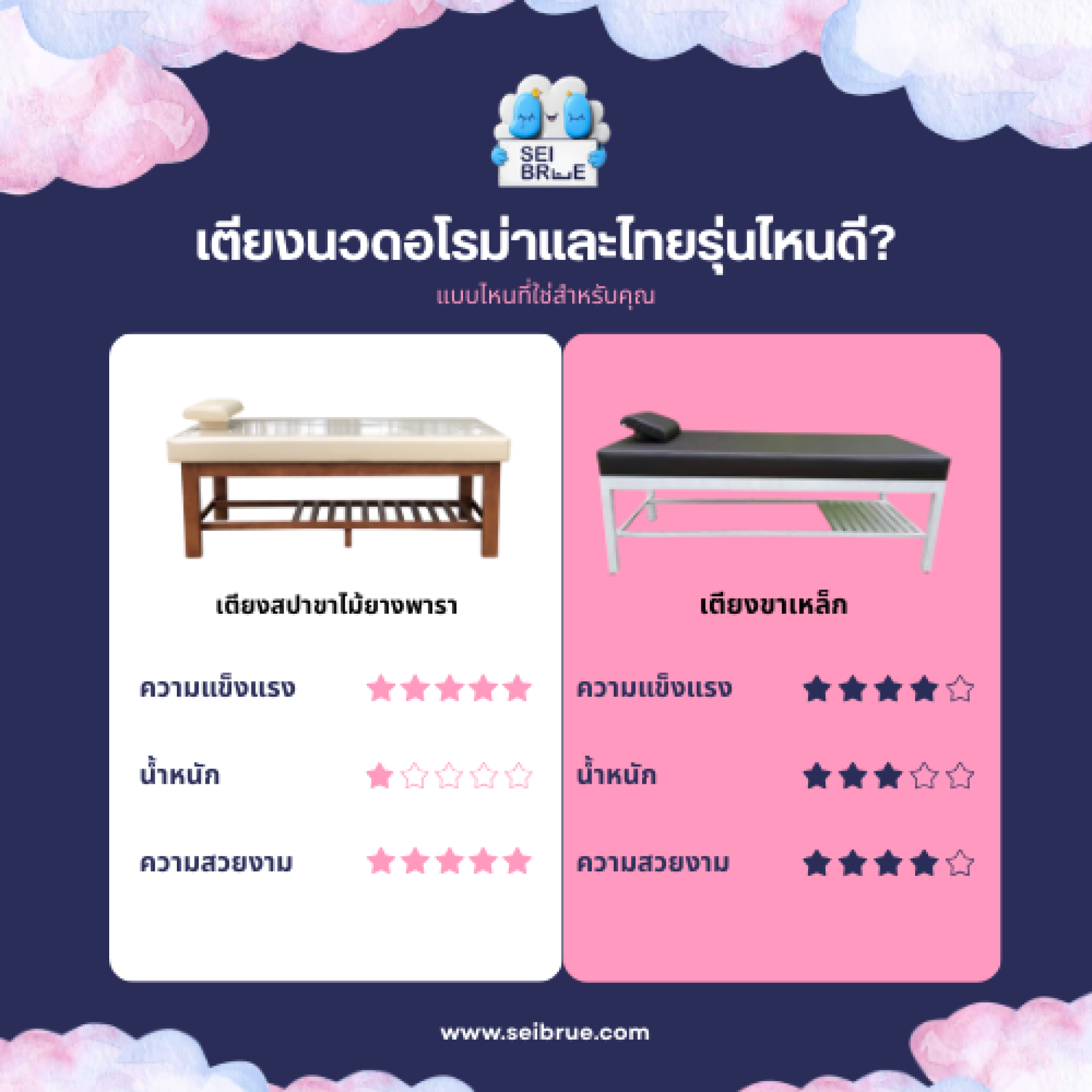 เตียงนวดอโรม่ากับเตียงนวดแผนไทยรุ่นไหนดี?